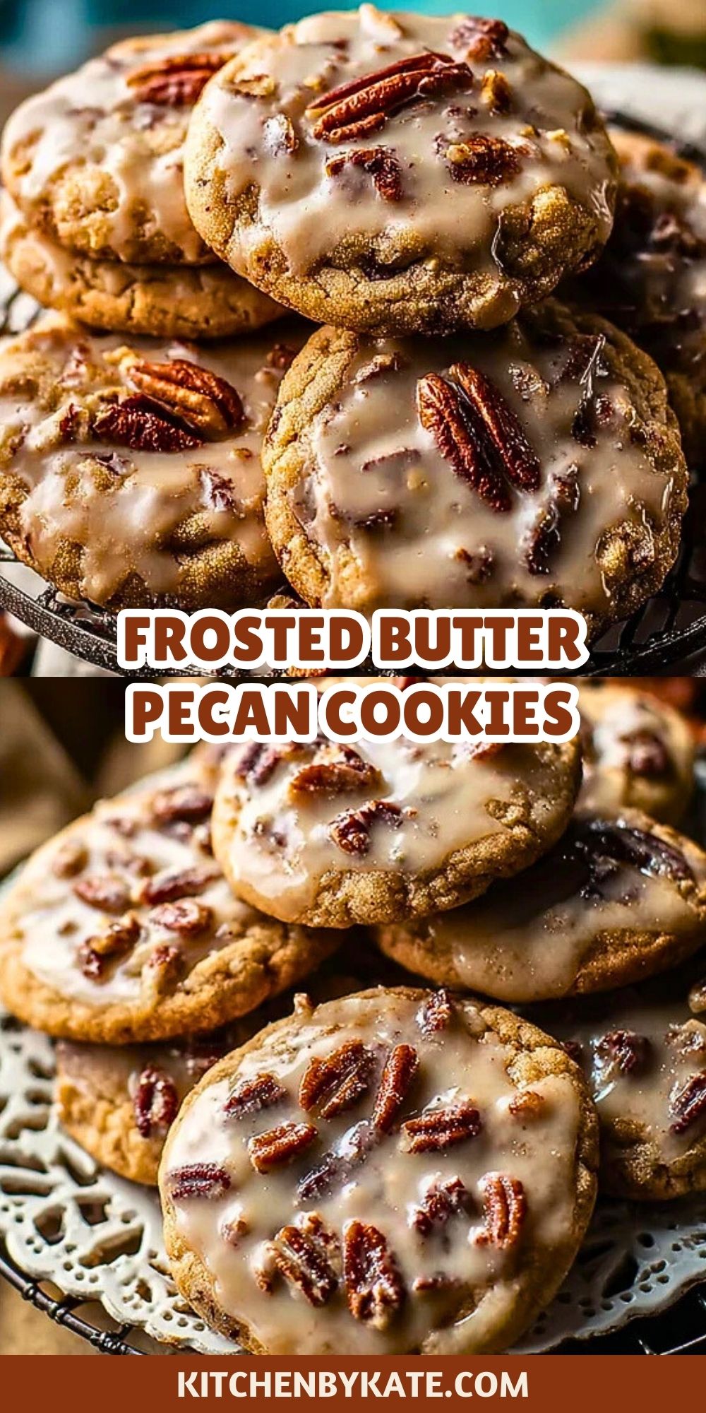These Frosted Butter Pecan Cookies combine buttery toasted pecans, soft-baked cookie centers, and a rich brown sugar frosting for the ultimate indulgent treat. Perfect for the holidays or year-round comfort baking. Keywords: butter pecan cookies, frosted cookies, holiday baking, pecan dessert, Southern cookie recipe.