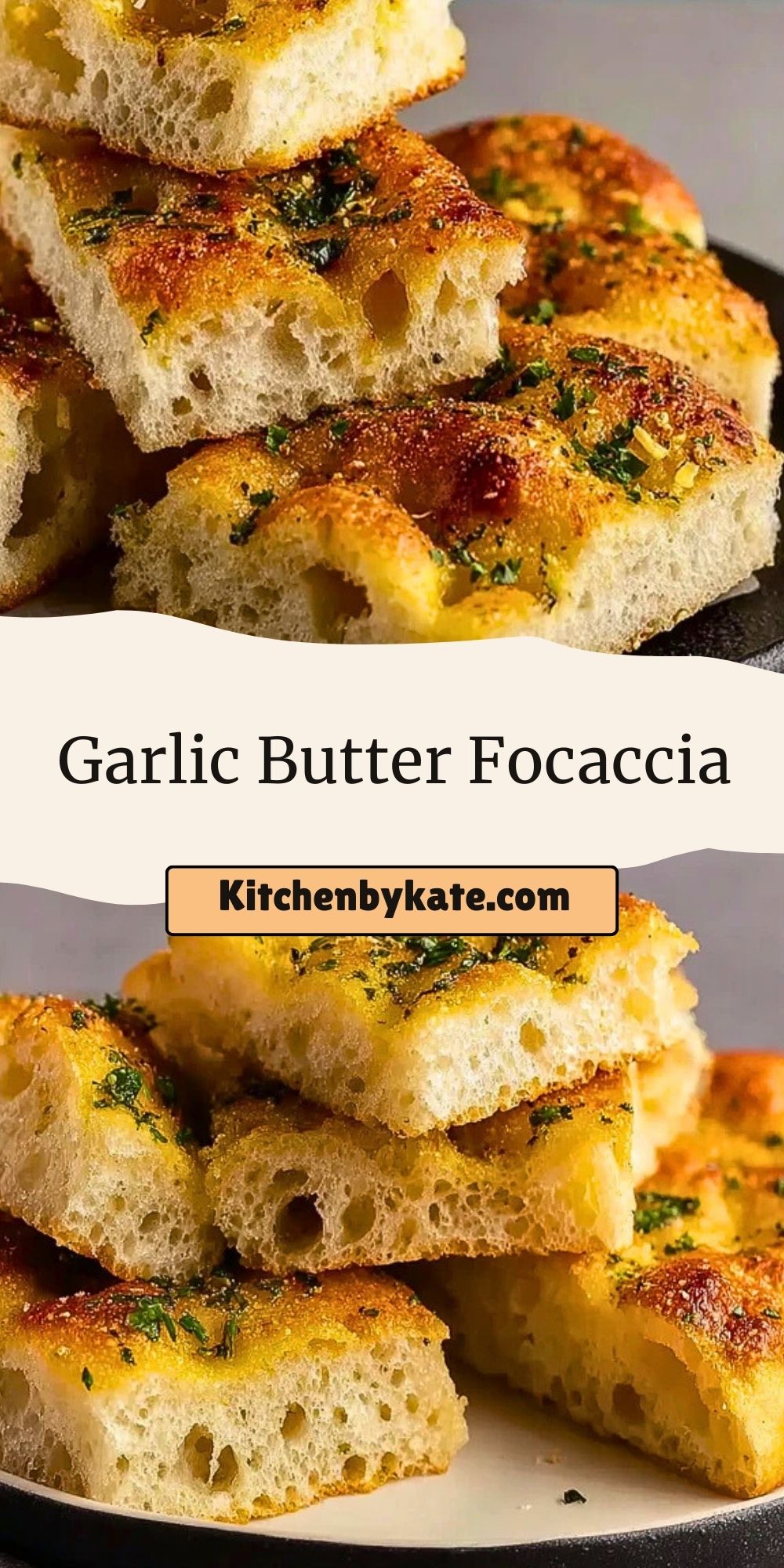 Fresh from the oven, Garlic Butter Focaccia is best enjoyed warm, when the crust is perfectly crisp and the garlic butter is still fragrant and melty. Slice into squares and serve as a side with pastas, hearty soups, or salads. It also works beautifully as the base for a sandwich or served alongside a charcuterie board.