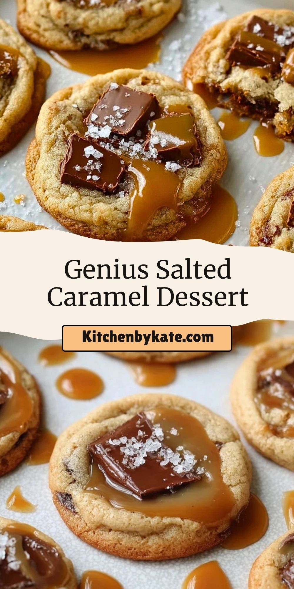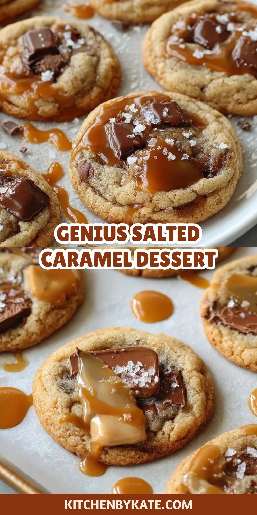 These Genius Salted Caramel Dessert cookies are soft, chewy, and filled with gooey caramel centers and melty chocolate chunks, finished with flaky sea salt. A perfect sweet-and-salty treat for caramel lovers, ideal for holidays, parties, or anytime indulgence.