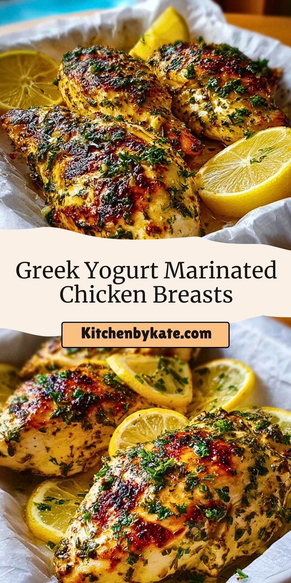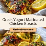 These Greek Yogurt Marinated Chicken Breasts are juicy, tender, and full of bold Mediterranean flavor. A healthy and protein-packed recipe made with simple ingredients like Greek yogurt, lemon, garlic, and herbs. Perfect for weeknight dinners or meal prep!