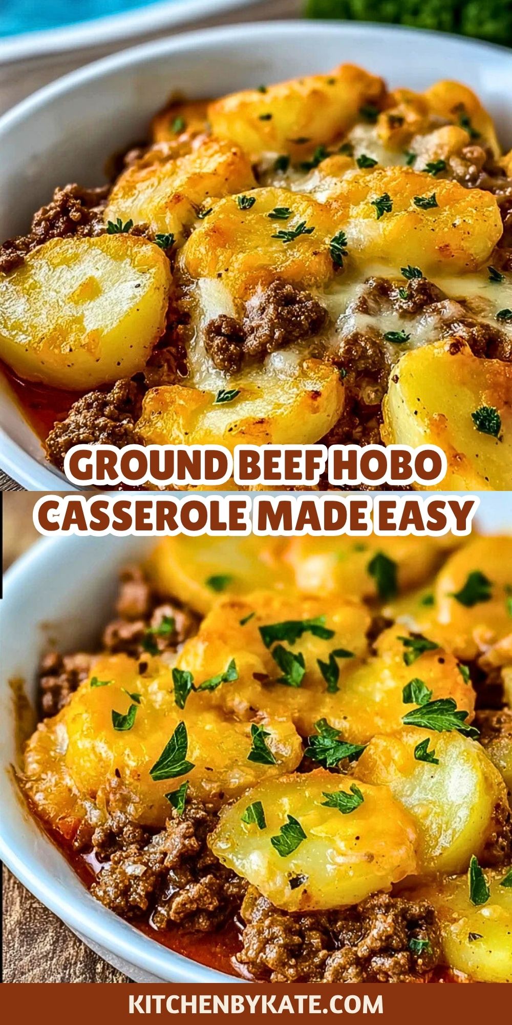 Ground Beef Hobo Casserole is a hearty and easy-to-make comfort food recipe perfect for weeknight dinners. With ground beef, sliced potatoes, cheddar cheese, and a creamy mushroom soup sauce, this casserole is family-friendly, budget-friendly, and full of flavor. A delicious, baked one-dish meal for all seasons.