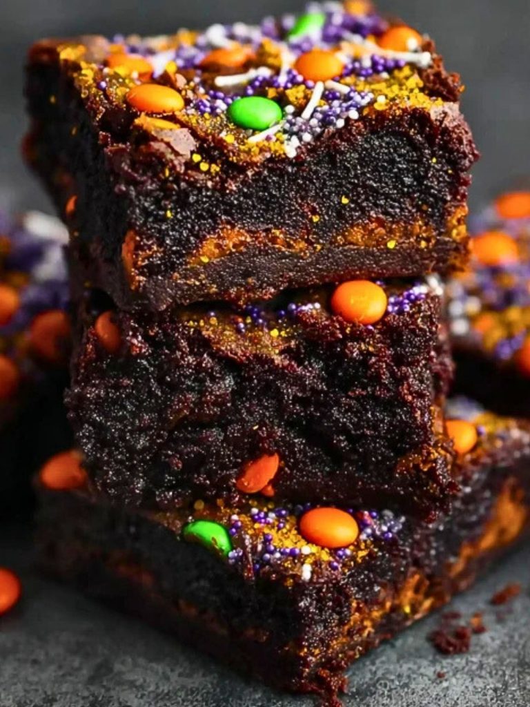 Dark, fudgy, and outrageously festive, these Halloween Brownies are the ultimate treat to impress at your spooky bash or cozy October night in. Each bite offers a dense, chewy center with swirls of rich chocolate and bursts of crunchy candy-coated chocolate pieces. Topped with Halloween-colored sprinkles and candies, they’re as fun to look at as they are to eat.