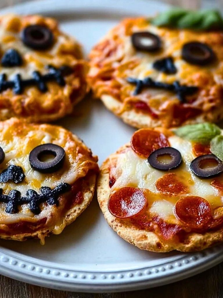 These mini pizzas are best enjoyed fresh out of the oven when the cheese is hot and gooey. Serve them on a festive platter for Halloween parties, game nights, or spooky movie marathons. Pair with a simple side salad or veggie sticks for a balanced bite.
