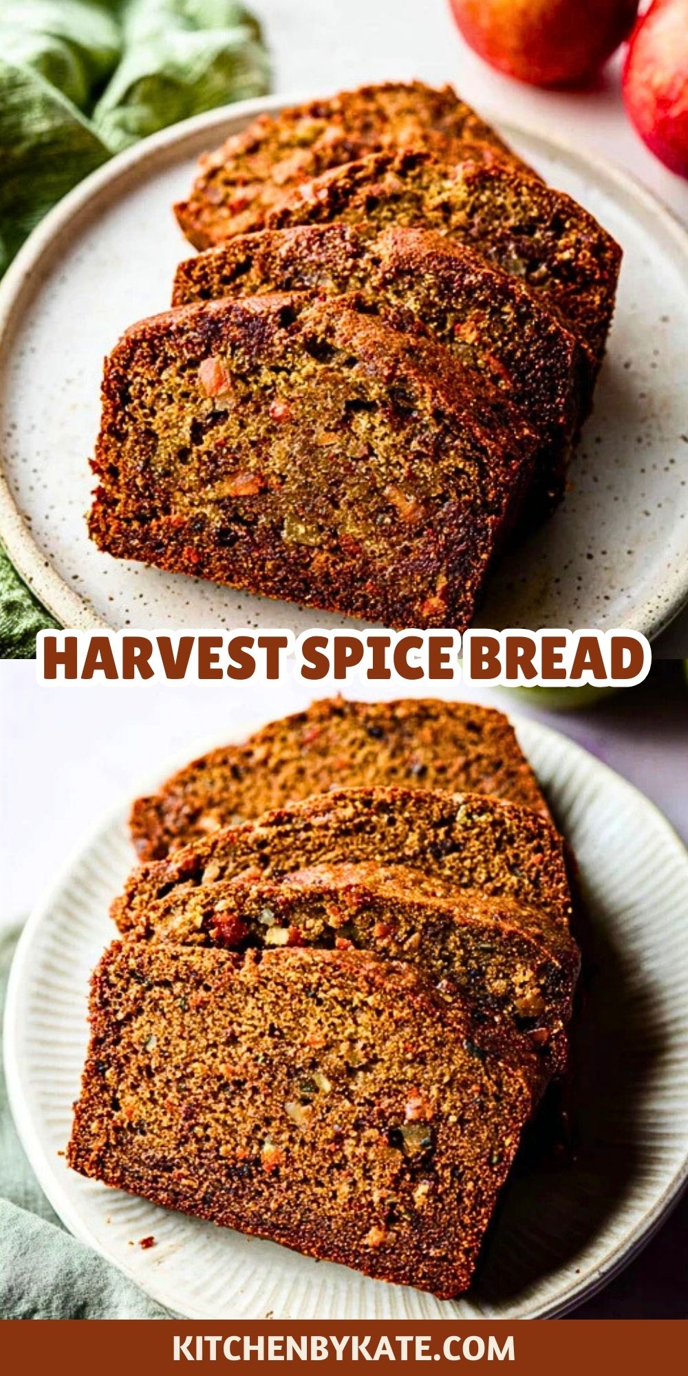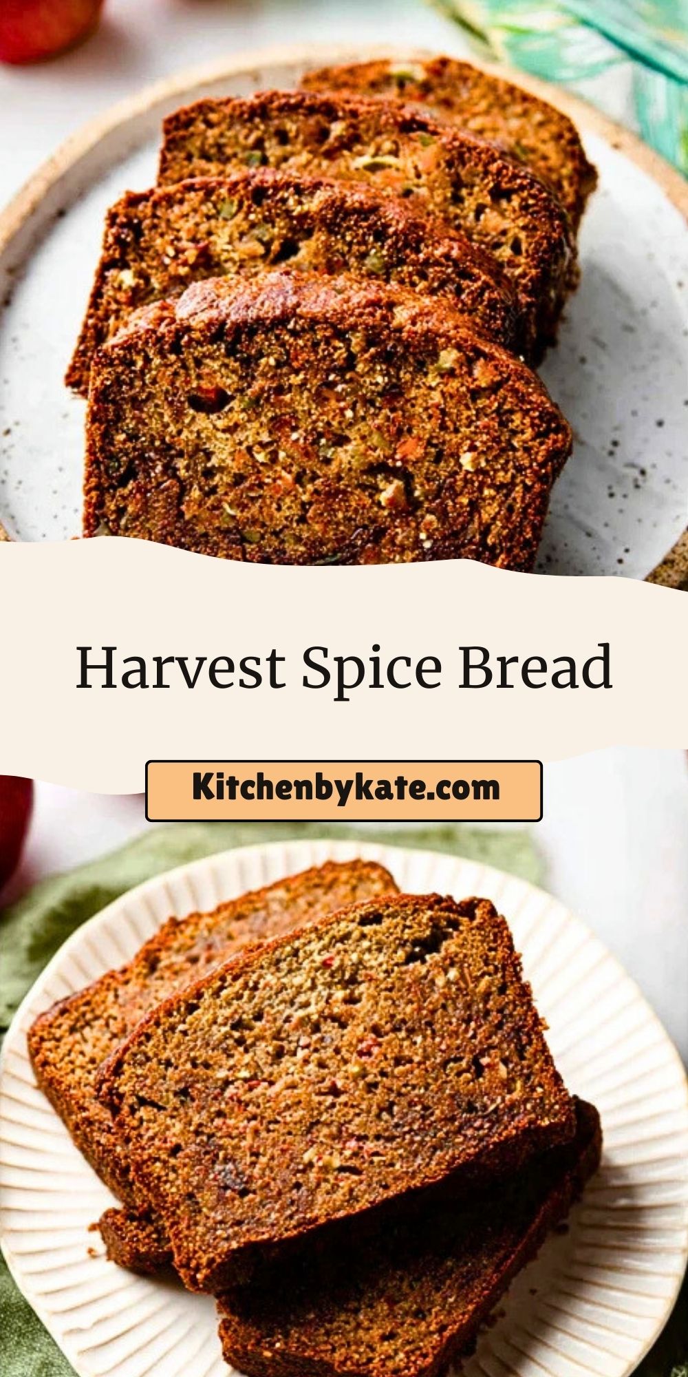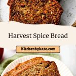 Serve Harvest Spice Bread slightly warm with a smear of butter, cream cheese, or even apple butter for an extra hit of fall flavor. It pairs beautifully with coffee, hot cider, or chai tea.