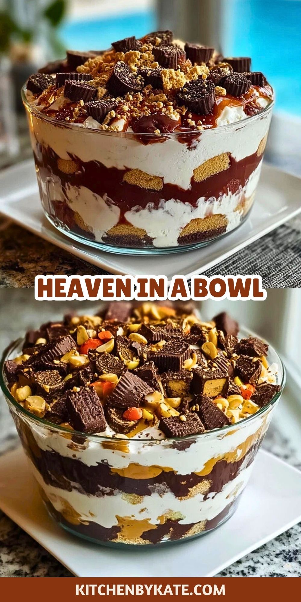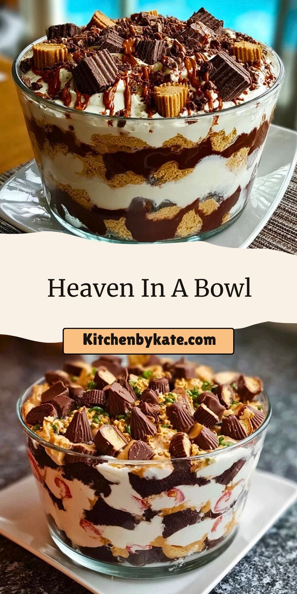 Heaven In A Bowl is a no-bake layered dessert packed with chocolate pudding, whipped cream, peanut butter, and chopped Reese’s—perfect for parties and potlucks. This indulgent treat blends crunchy cookies, creamy layers, and rich candy toppings for the ultimate crowd-pleaser. Great for make-ahead desserts and sweet tooth cravings.