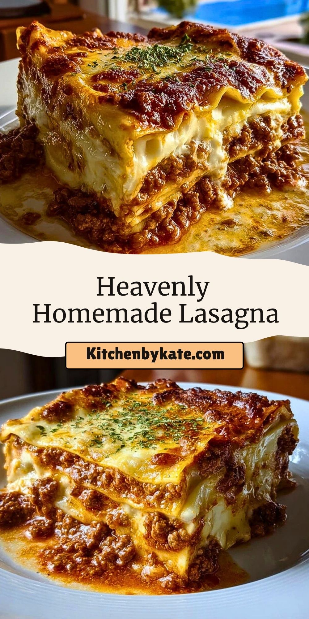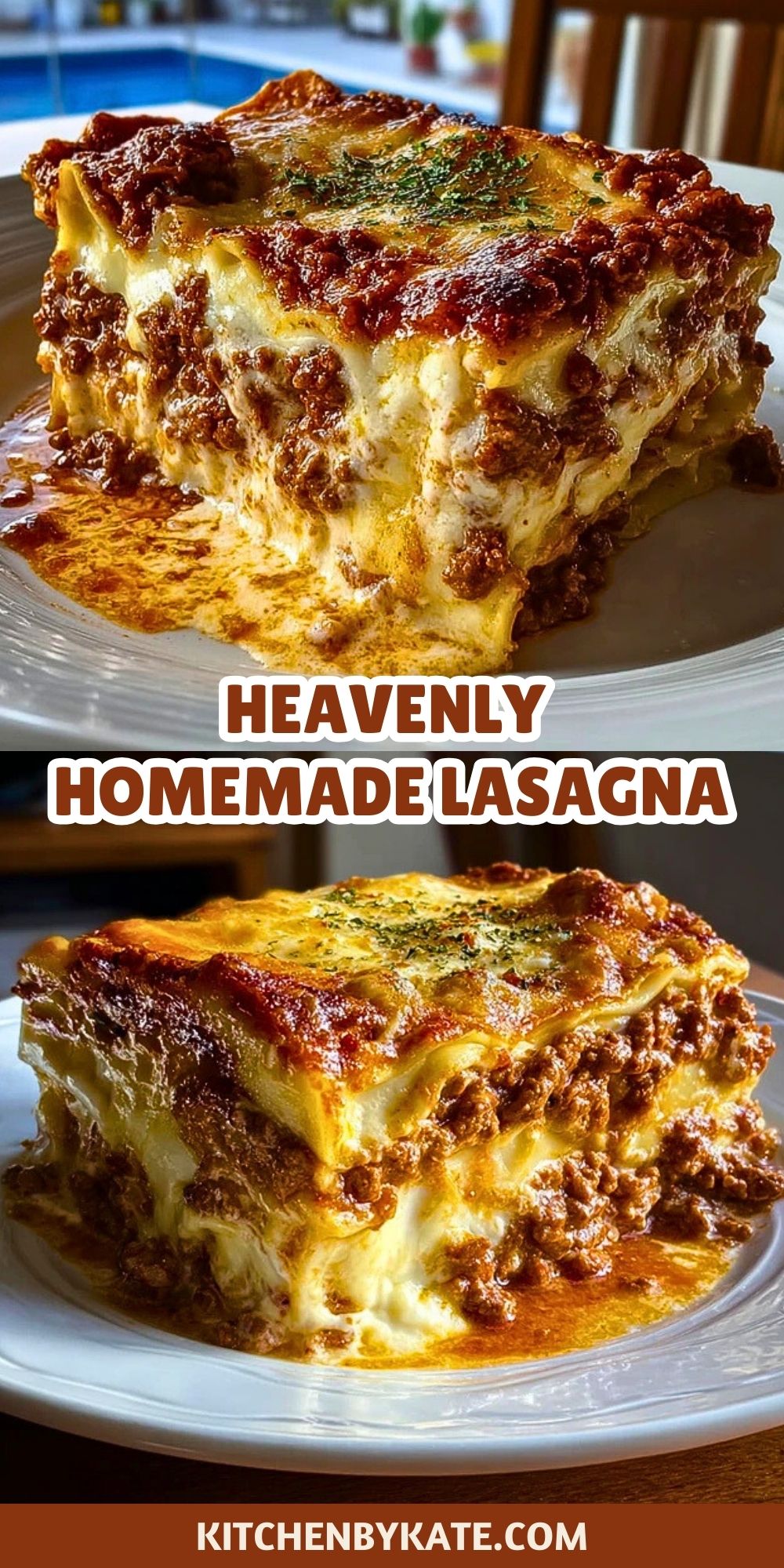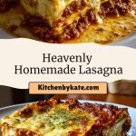 Heavenly Homemade Lasagna is the ultimate comfort food, made with layers of tender pasta, rich meat sauce, creamy ricotta, and gooey mozzarella. Perfect for weeknight dinners, special gatherings, or make-ahead meals. This classic Italian lasagna recipe is easy, hearty, and freezer-friendly—ideal for family meals or potlucks.