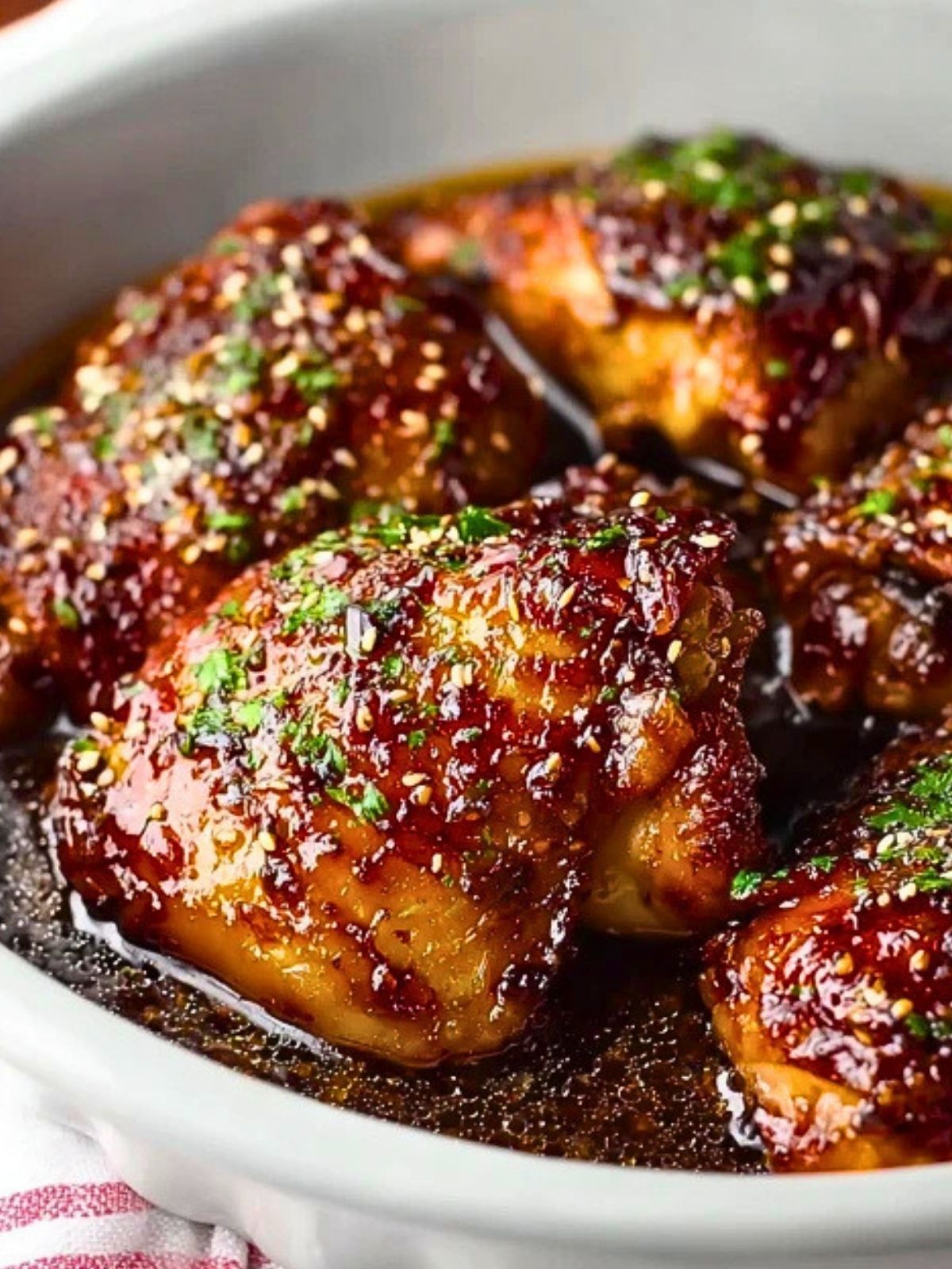 Once the sauce has thickened, spoon it over the chicken before serving. Garnish with chopped parsley or sesame seeds if desired.
