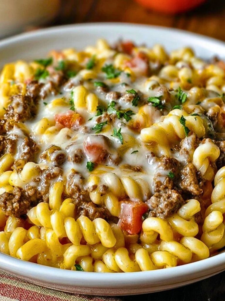 Perfect for busy weeknights or laid-back weekends, this dish comes together quickly and fills the kitchen with the kind of aroma that brings everyone running to the table. It’s a hearty, cheesy, beefy pasta recipe that hits all the comfort notes without requiring hours in the kitchen.