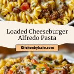 This Loaded Cheeseburger Alfredo Pasta recipe blends creamy Alfredo sauce, seasoned ground beef, cheddar cheese, and rotini pasta into one hearty, comforting dish. Perfect for family dinners, it’s an easy one-skillet meal ready in under 30 minutes—ideal for busy weeknights or cozy weekends. This pasta recipe is cheesy, meaty, satisfying, and makes fantastic leftovers!