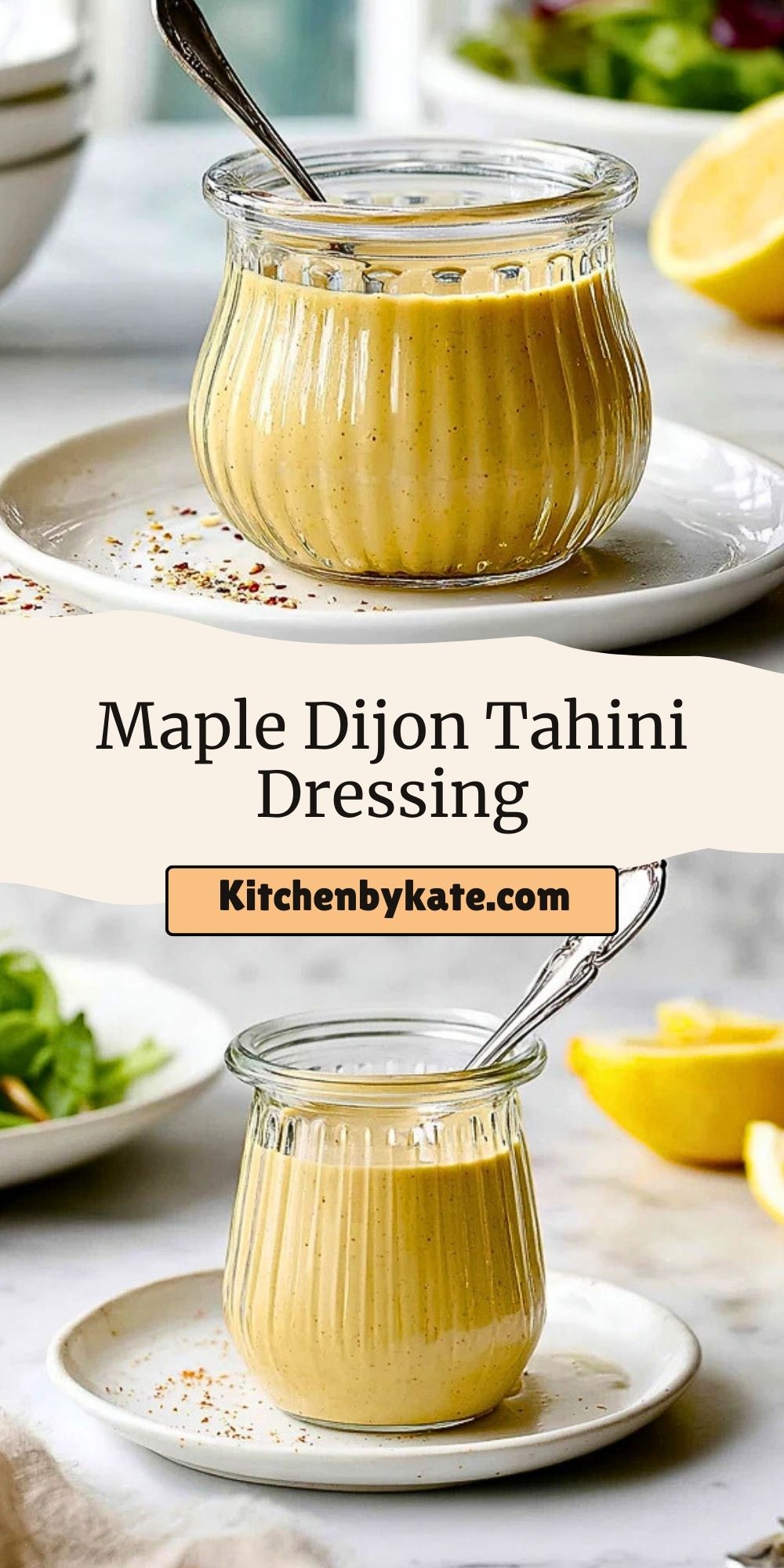 1. In a small mixing bowl or jar, combine tahini, maple syrup, Dijon mustard, and lemon juice.