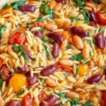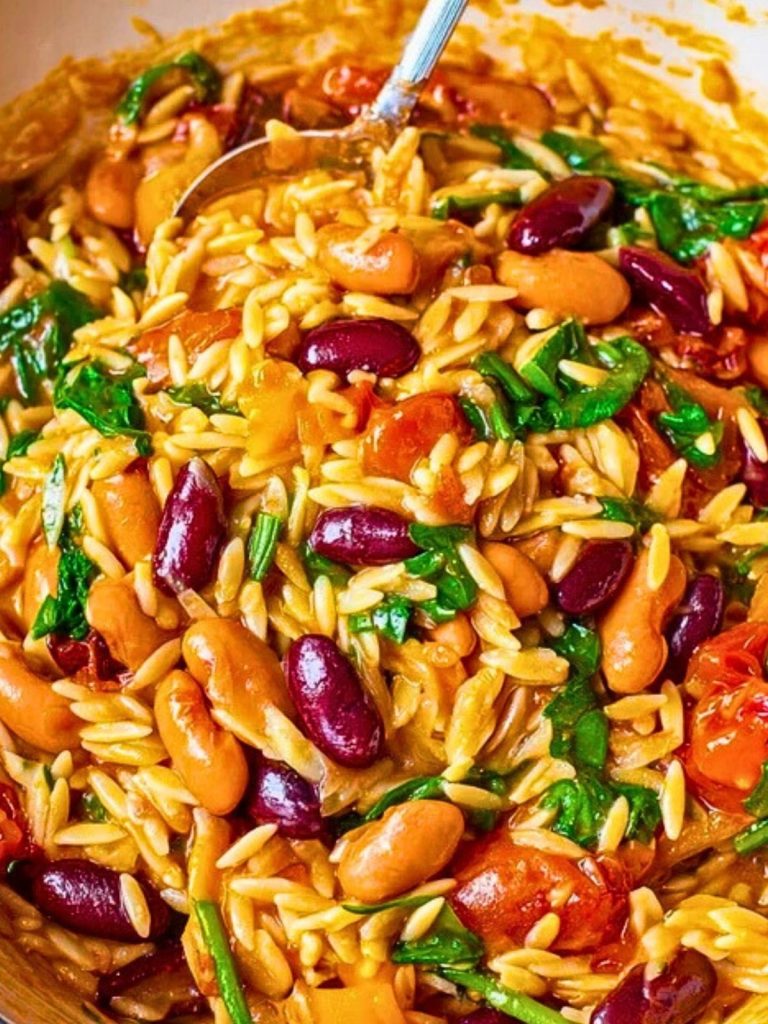 This Mediterranean Orzo and Beans recipe is a vibrant one-pot vegetarian dish packed with orzo pasta, kidney and pinto beans, spinach, and tomatoes in a savory broth. Perfect for a hearty weeknight dinner or meal prep, this plant-based pasta is both creamy and protein-rich.