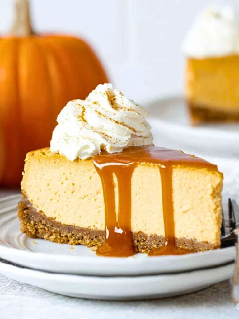 Topped with a drizzle of caramel and a generous swirl of whipped cream, every bite is a harmony of cinnamon warmth, pumpkin richness, and silky cheesecake bliss. Whether you’re hosting Thanksgiving or just need a pumpkin fix, this no-bake wonder is here to impress without the mess.