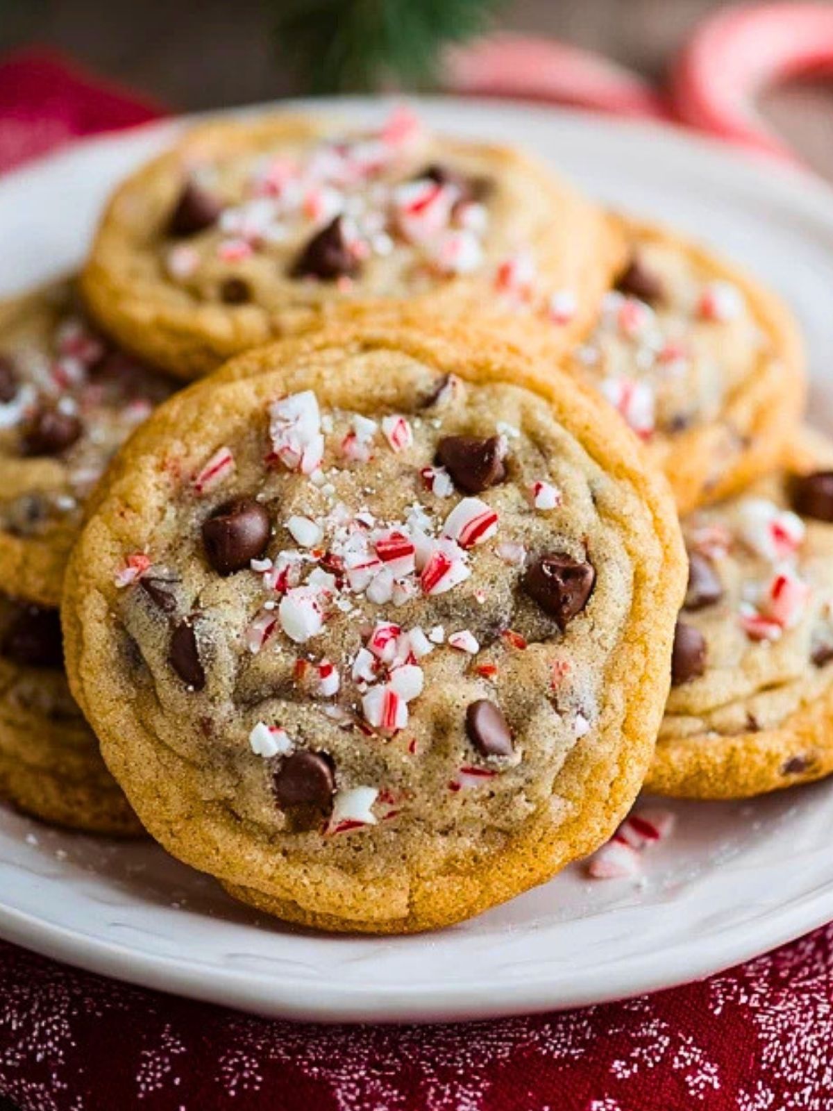 These cookies have that perfect mix of familiar and festive. The chocolate chips melt into the soft dough while the peppermint pieces on top add texture, color, and a refreshing contrast that keeps every bite from feeling too heavy.