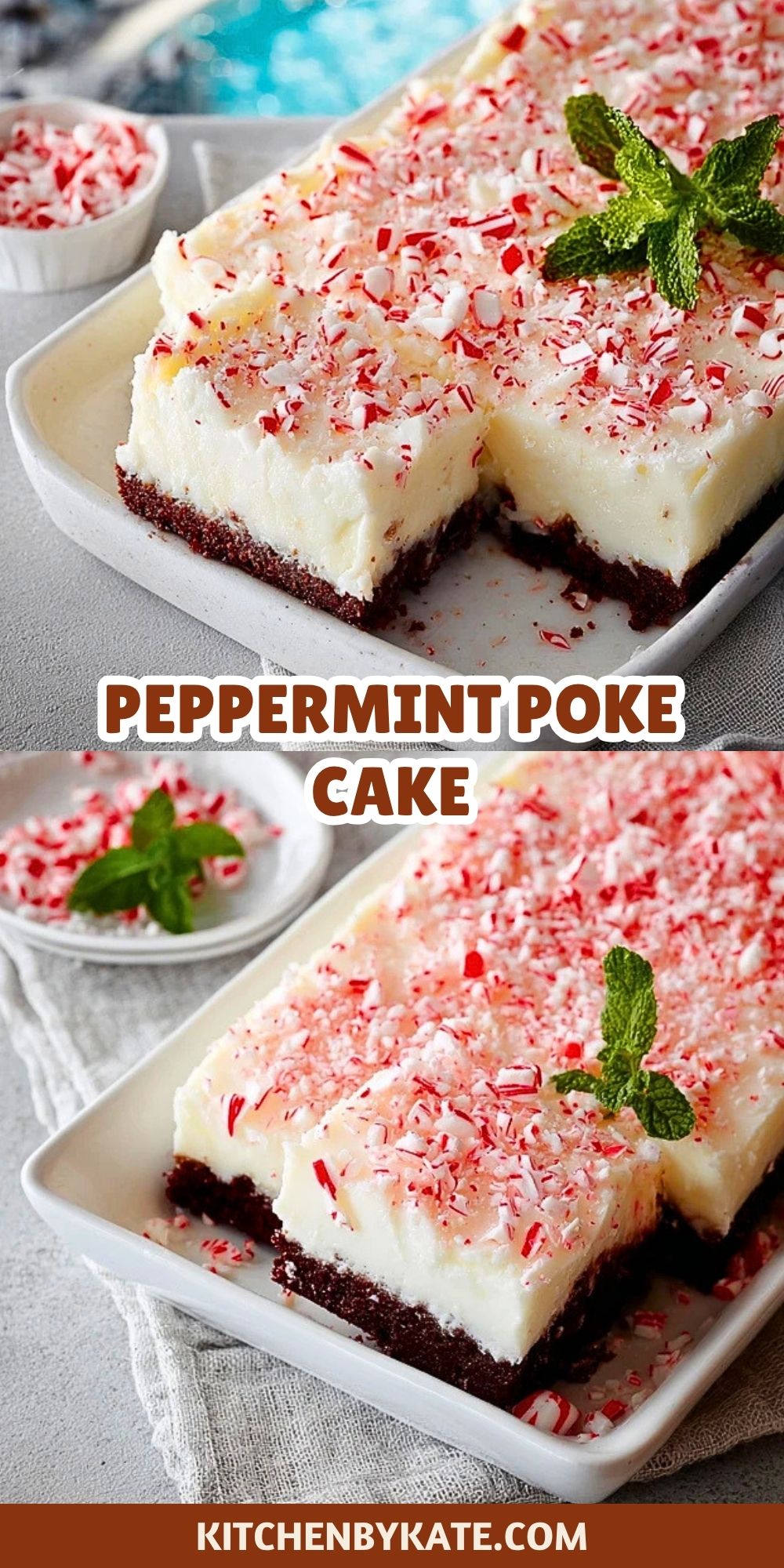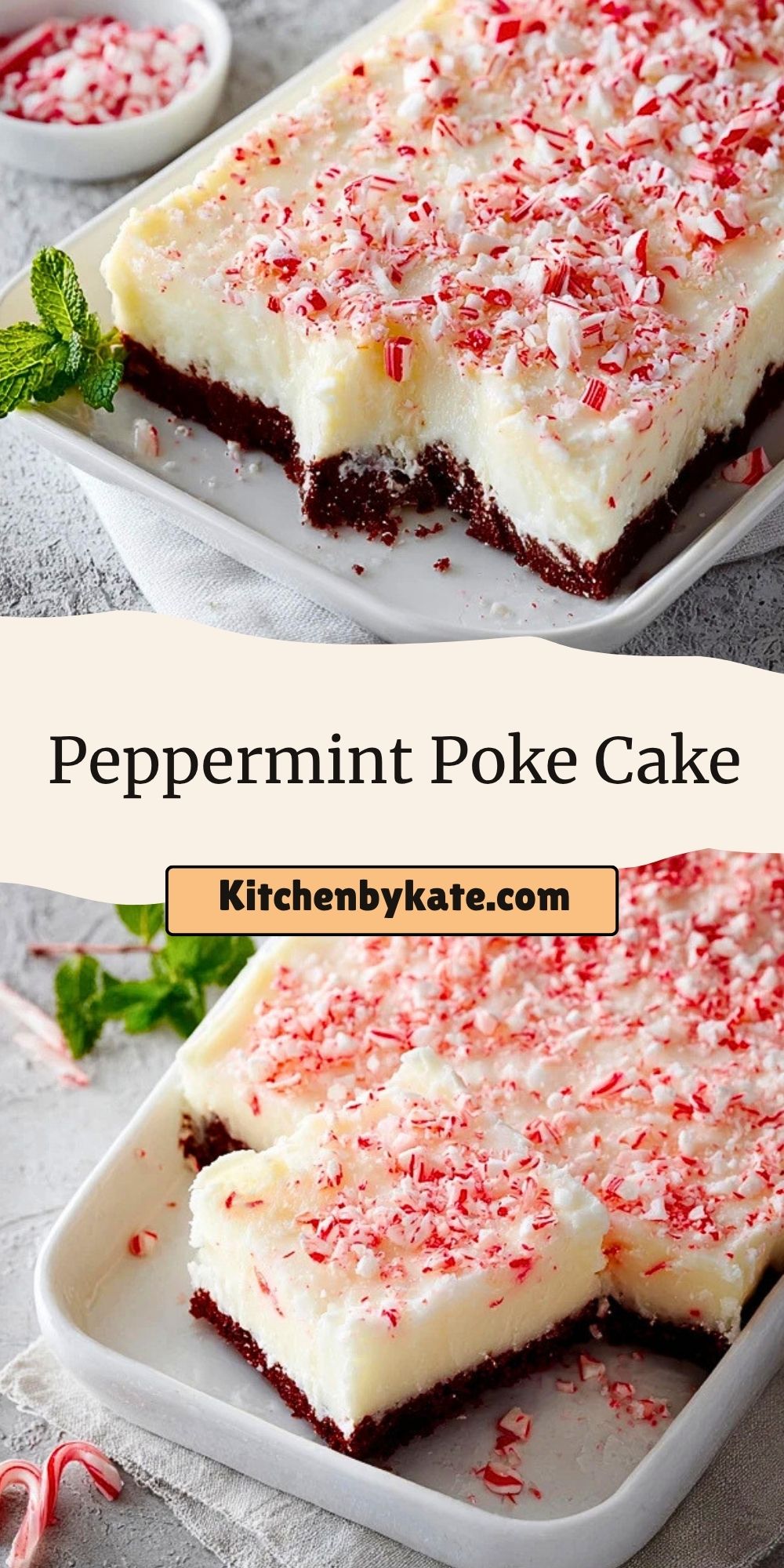 Peppermint Poke Cake is best served chilled, which makes it especially nice for holiday dinners and dessert tables where you want something refreshing after a heavier meal. For a pretty presentation, top each slice with a little extra crushed candy cane just before serving so the color stays bright and crisp.
