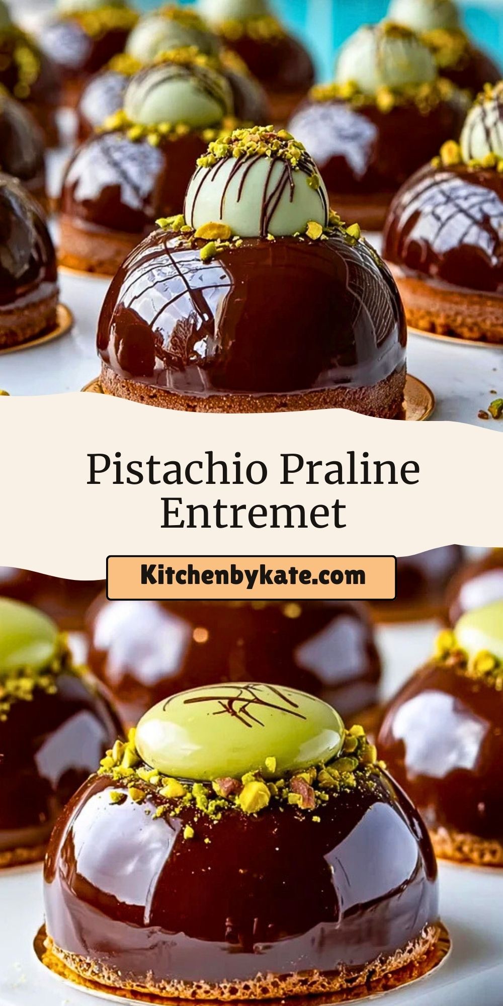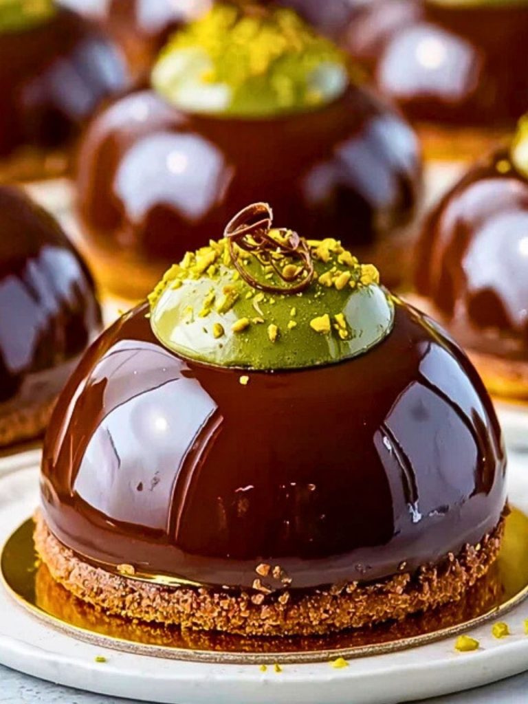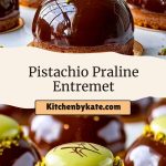 This Pistachio Praline Entremet is an elegant, multi-layered dessert combining pistachio mousse, praline crunch, sponge cake, and a glossy chocolate mirror glaze. A show-stopping patisserie-style dome perfect for special occasions. Make-ahead, freezer-friendly, and irresistibly textured!