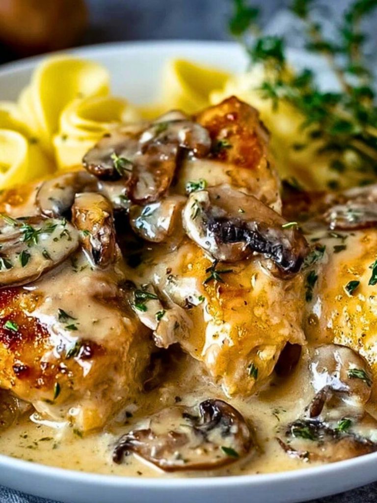 Golden, tender chicken simmered in a luxuriously creamy Asiago cheese sauce with caramelized mushrooms and fresh herbs—this is comfort food with restaurant-quality flair. The richness of the cheese, the earthiness of the mushrooms, and the buttery seared chicken make this dish a standout for both casual weeknights and elegant dinner parties.