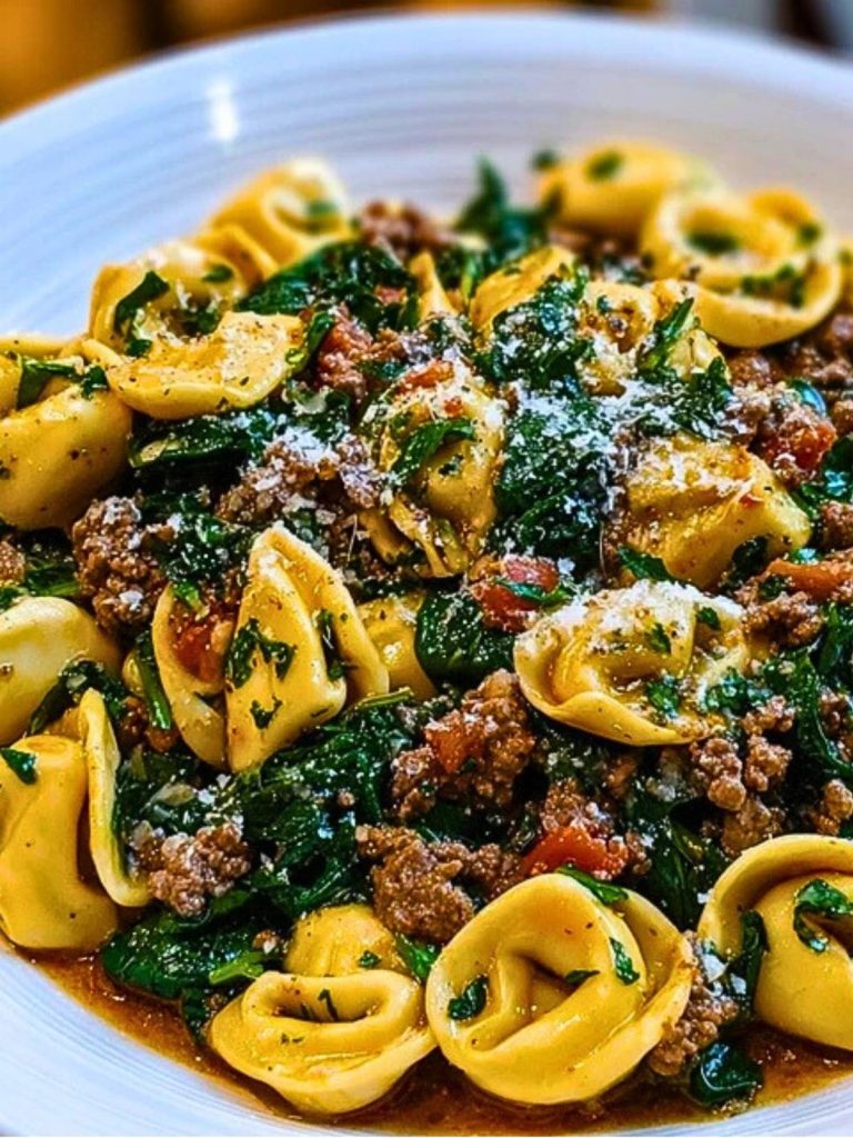 Savory Garlic Butter Beef and Spinach Tortellini is a quick one-pan dinner recipe packed with flavor. Made with cheese tortellini, ground beef, spinach, and a garlic butter sauce, it’s a hearty and easy comfort meal perfect for busy weeknights. Keywords: garlic butter tortellini, beef and spinach pasta, easy tortellini skillet.