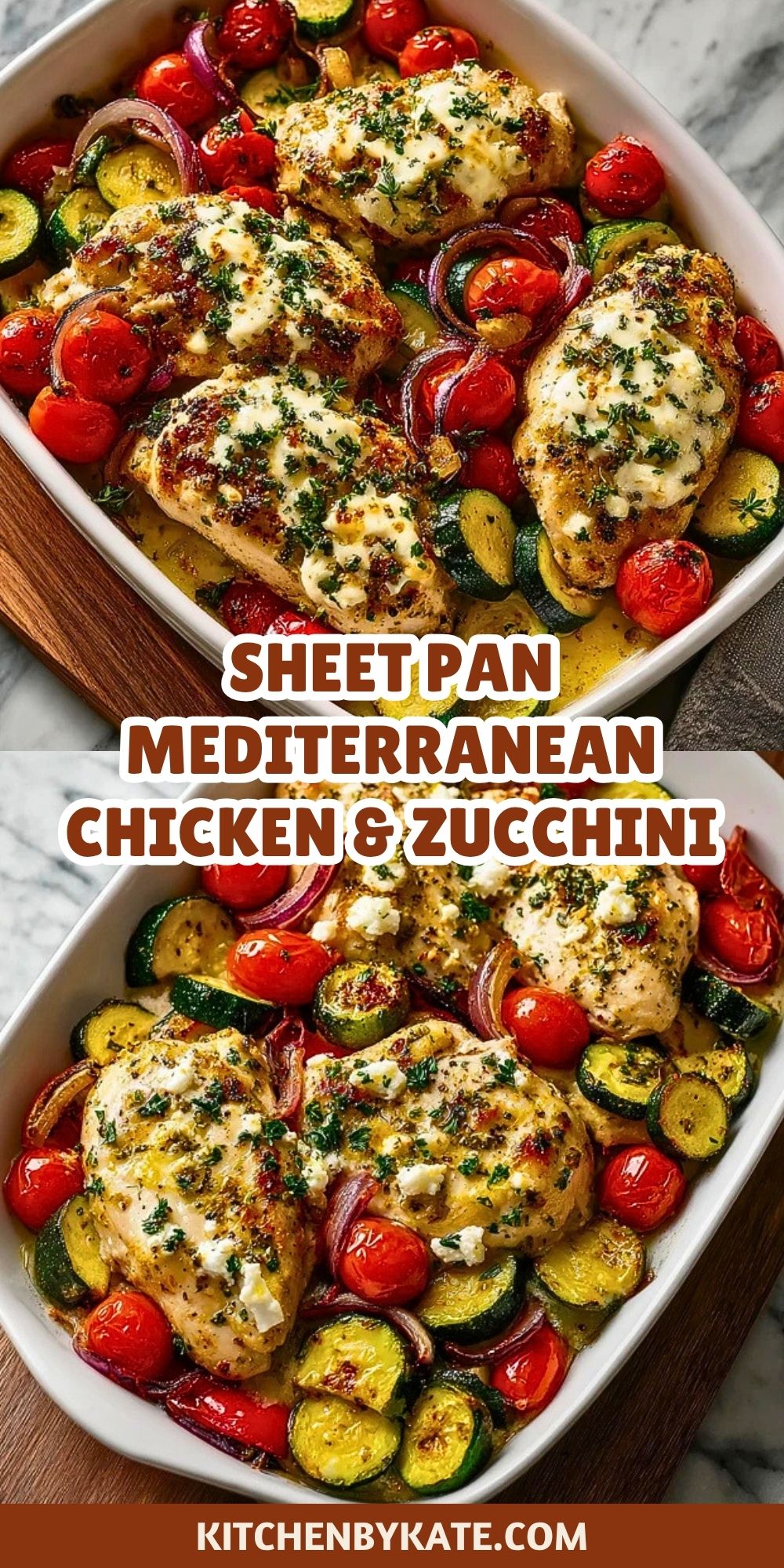 This sheet pan Mediterranean chicken and zucchini is a fresh, easy dinner packed with juicy chicken, tender zucchini, sweet roasted tomatoes, and savory feta. It is perfect for a quick dinner, healthy dinner, easy recipe, weeknight meal, and simple food ideas when you want something colorful, satisfying, and full of Mediterranean flavor.