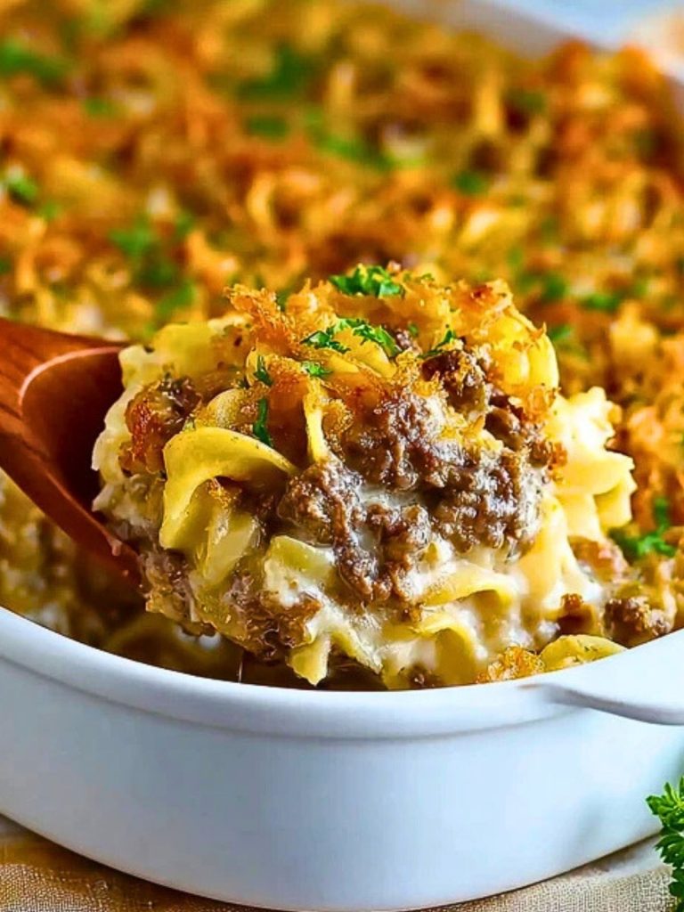 Rich, creamy, and layered with savory flavor, this Simple French Onion Beef Casserole is the kind of comfort food that brings everyone running to the table. Imagine tender egg noodles blanketed in a creamy beef and onion sauce, all topped with crispy fried onions that add just the right crunch. It’s a crowd-pleaser that tastes like it took all day to make, but it comes together with surprising ease.