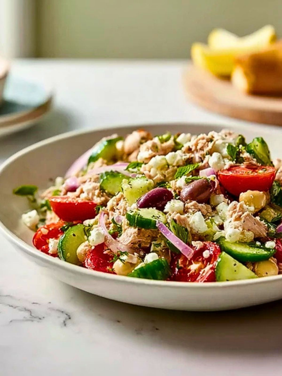 Looking for a quick, healthy lunch or light dinner that doesn’t sacrifice flavor? This Simple Mediterranean Tuna Salad is a fresh, protein-packed dish loaded with crisp vegetables, creamy feta, and zesty lemon dressing. Perfect for busy days, meal prep, or easy dinner ideas, this no-cook recipe comes together in minutes and delivers bold Mediterranean flavors in every bite.