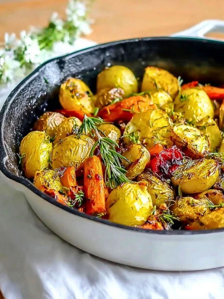 Nothing beats the comfort of a warm skillet filled with caramelized, herb-kissed vegetables straight from the oven. This Simple Roasted Vegetables dish brings together golden baby potatoes, sweet carrots, and colorful bell peppers roasted to perfection in olive oil and herbs. It’s a rustic side dish that smells like Sunday dinner and tastes even better.