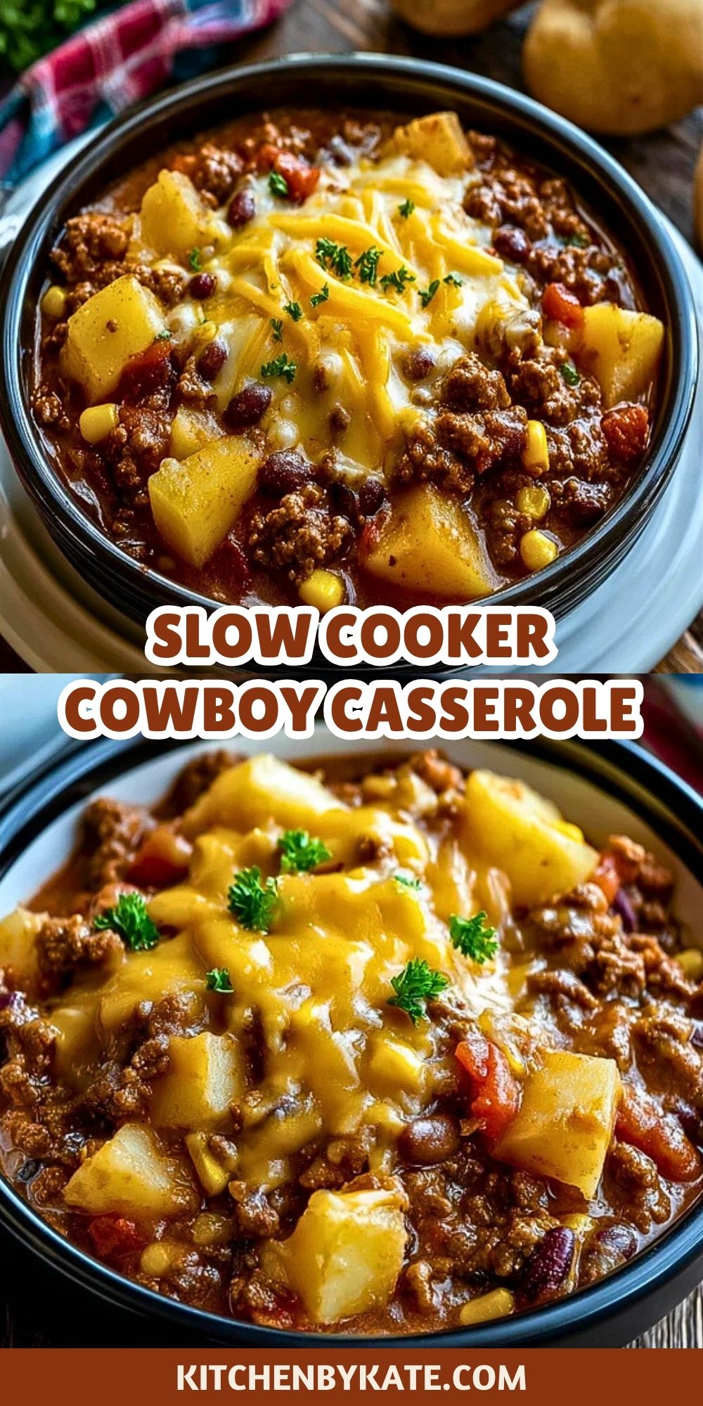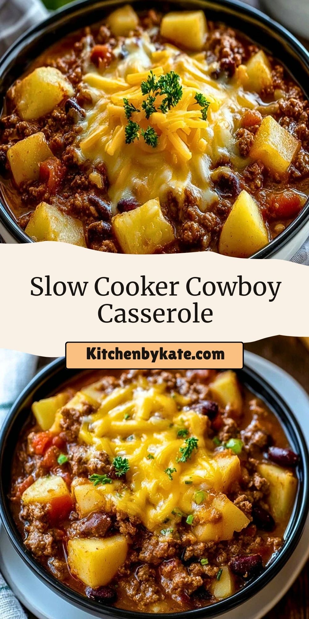 This hearty Slow Cooker Cowboy Casserole is packed with ground beef, tender potatoes, beans, corn, and gooey cheddar cheese, all simmered in a savory cream-based sauce. Perfect for meal prep or weeknight dinners, this easy slow cooker casserole recipe brings comfort and flavor to your table. Great for families, freezer meals, and crowd-pleasing gatherings.