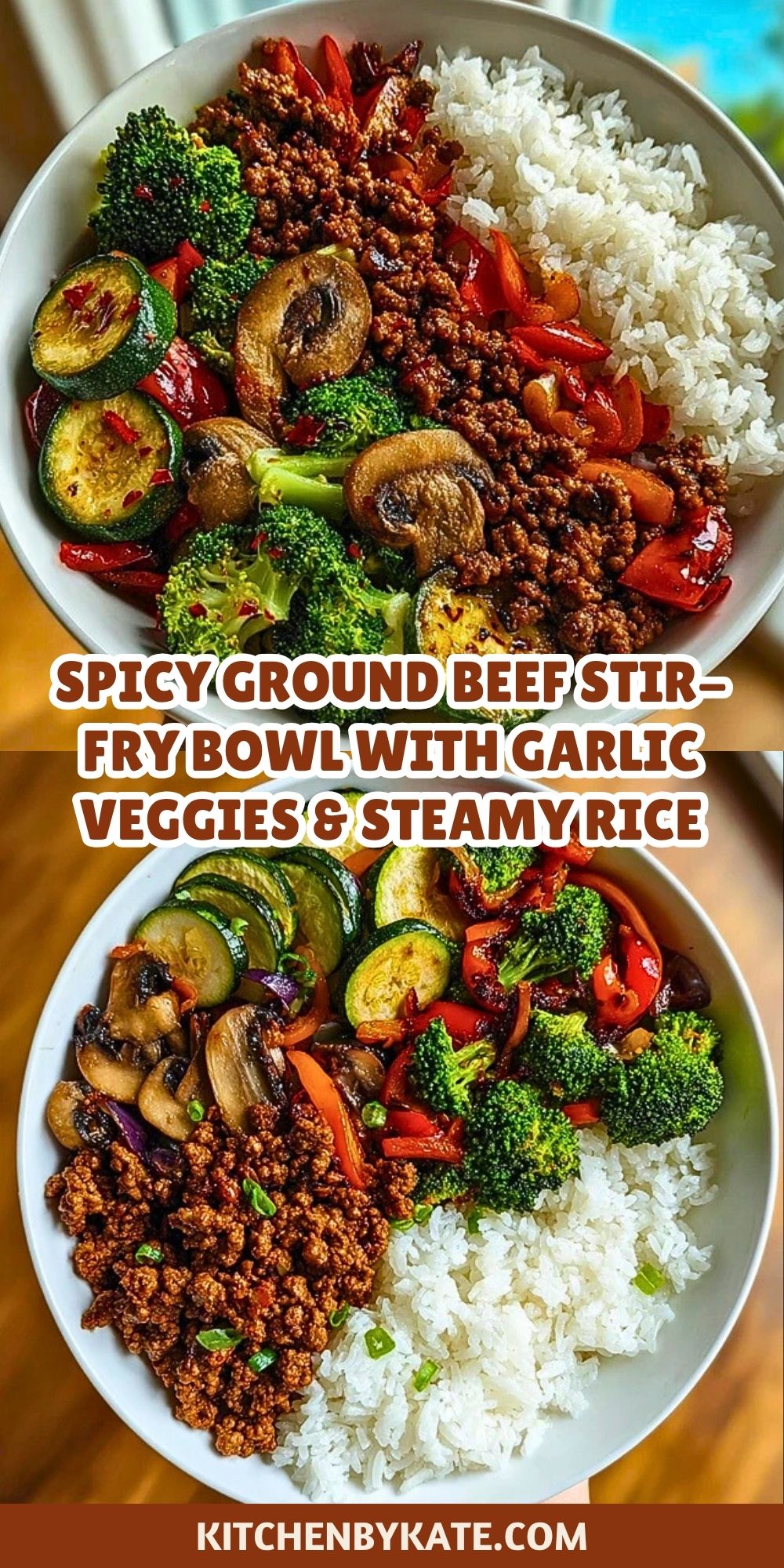 This Spicy Ground Beef Stir-Fry Bowl with Garlic Veggies & Steamy Rice is a bold and easy 30-minute dinner packed with umami-rich ground beef, crisp garlic-seasoned vegetables, and fluffy white rice. A quick weeknight meal perfect for meal prep, gluten-free options, and spicy food lovers.