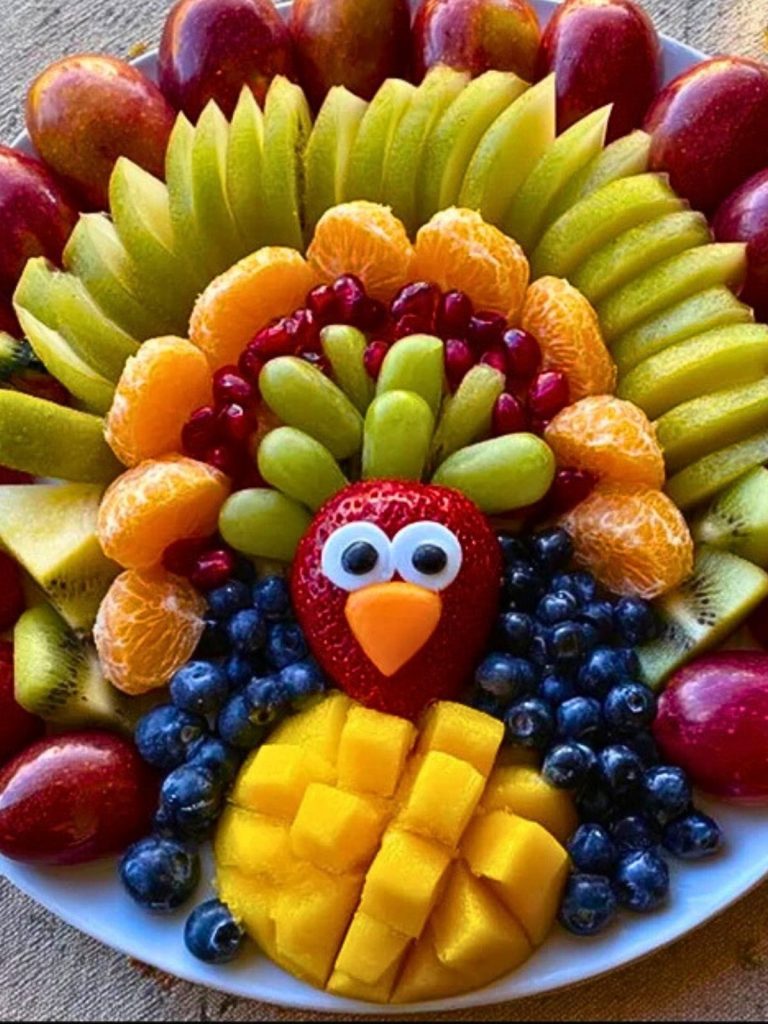 - Strawberries: Serve as the turkey face, providing vibrant color and juicy sweetness.