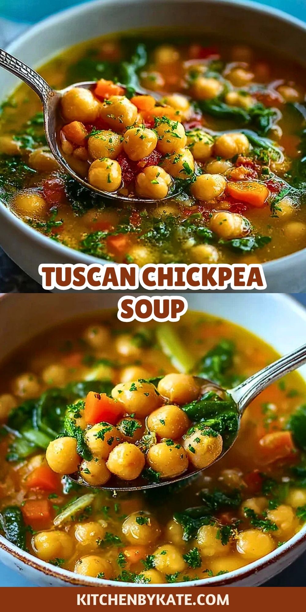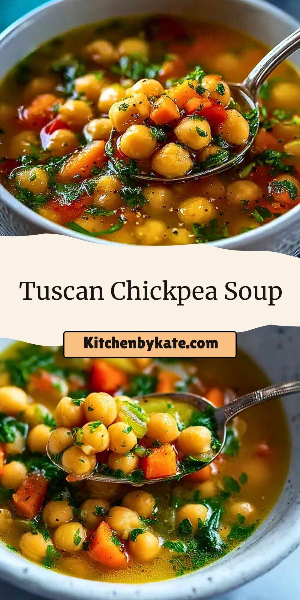 Tuscan Chickpea Soup is a hearty, vegan soup recipe loaded with chickpeas, carrots, celery, and herbs in a flavorful vegetable broth. This healthy, gluten-free meal is perfect for weeknight dinners or meal prep. Enjoy a warm, comforting taste of Tuscany in every bite.