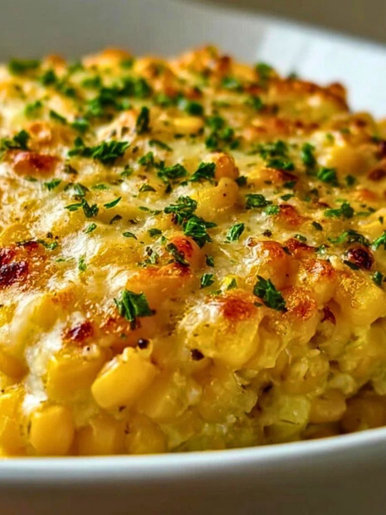 This baked corn dish is best served hot, right out of the oven when the cheese is at its melty peak. It pairs perfectly with roasted meats, grilled veggies, or a crisp green salad.